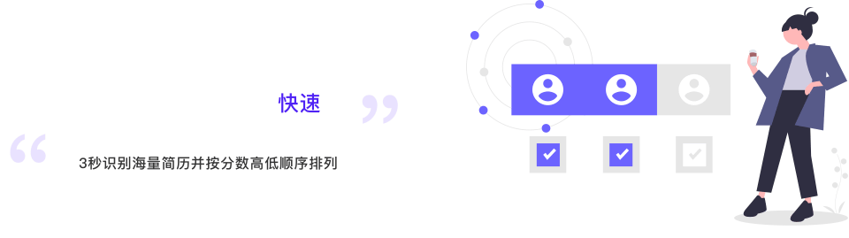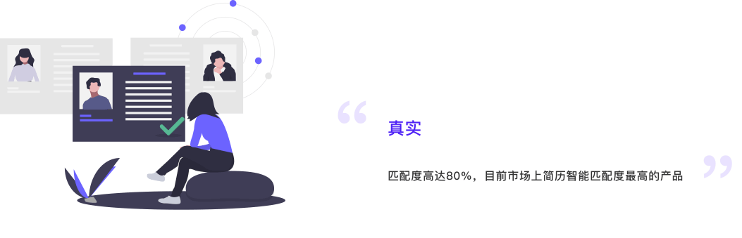 通过领先的人岗匹配算法和深度学习技术,快速智能分析简历与发布岗位的匹配度,精准匹配最适合企业的人才。3秒完成简历分析,精准匹配度高达80%以上。